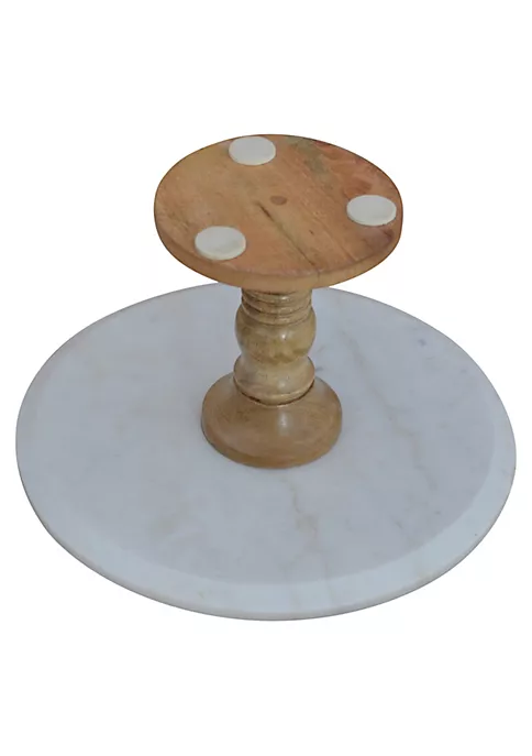 Add this beautiful marble top cake stand to your decor. It features a strong pedestal, large base, and smooth design. It is the perfect accessory and way of displaying a selection of cakes in a simple yet glamorous way. It can be gifted or used in home, events and occasions such as weddings, dinner parties, and family gatherings.
