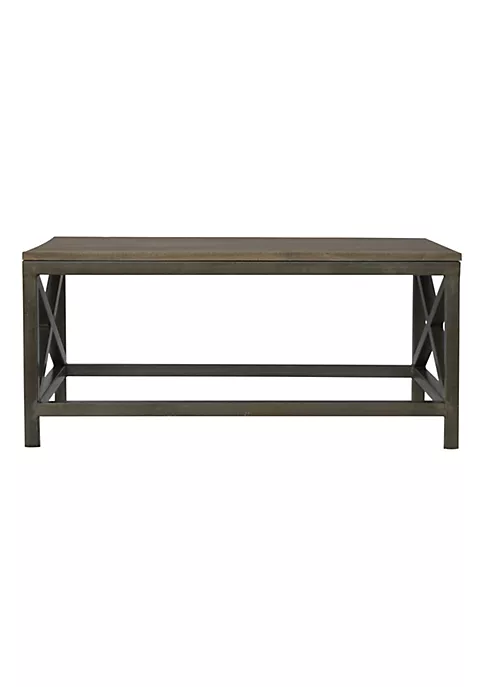 This rectangular coffee table has a refined shape and is topped by a lovely sandblasted oatmeal top finish. This modern coffee table fits into any type of interior and is the perfect way to show off an industrial style design. It is constructed from 100% solid mango wood and 100% metal iron which has a pewter finish.