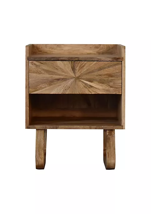This bedside is perfect when it comes to keeping your bedroom orgasnised and keeping little bits close to you before bedtime. The sunrise design brings a more elegant and eye-catching display while proving handy all over your home. It is made with 100% solid mango wood with a fine oak-ish finish.