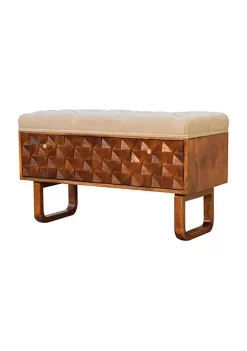 Artisan Furniture U-Shape Chestnut Diamond Carved Mud Linen Storage Bench
